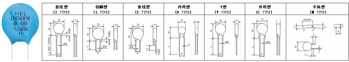 | HEL 10D471KH | 470(423~517) | 300 | 385 | 775 | 3500 | 4kV/2kA | 0.4 | 99 | 240 | 下載 |